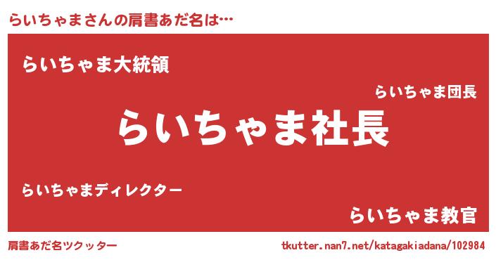 | ツイッター | らいちゃまさんのツイッターID『tsukushi_man』 |