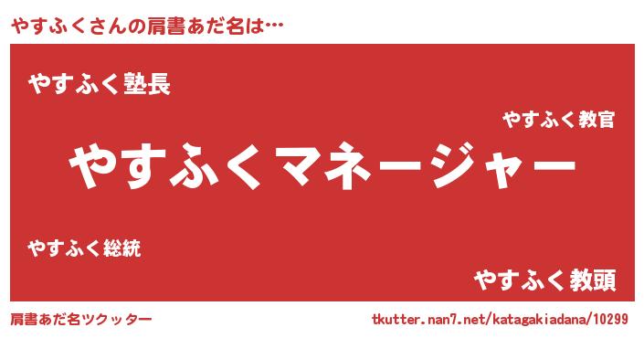 | 意味不明あだ名 | 『とにかく怪しいやすふく』 |