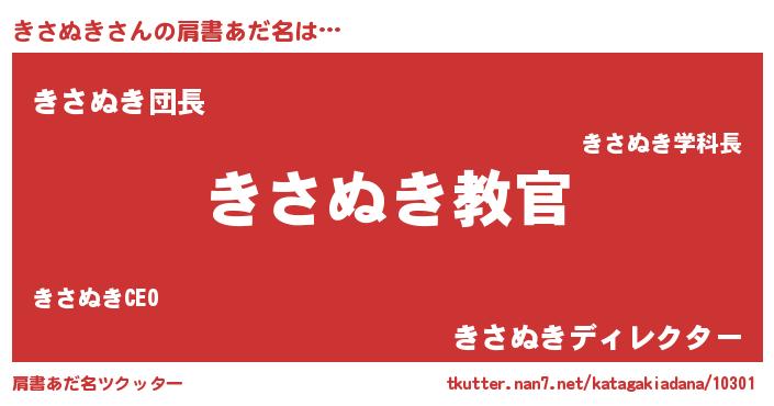 | 意味不明あだ名 | 『住所不定無職きさぬき(3歳)』 |