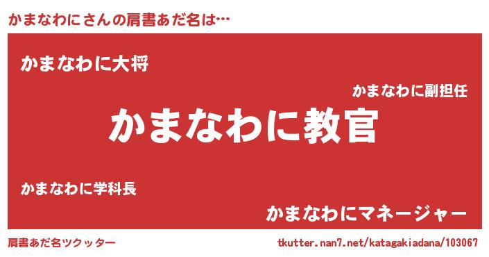| 男性向けラノベタイトル風あだ名 | 『この素晴らしい世界にかまなわにを!』 |