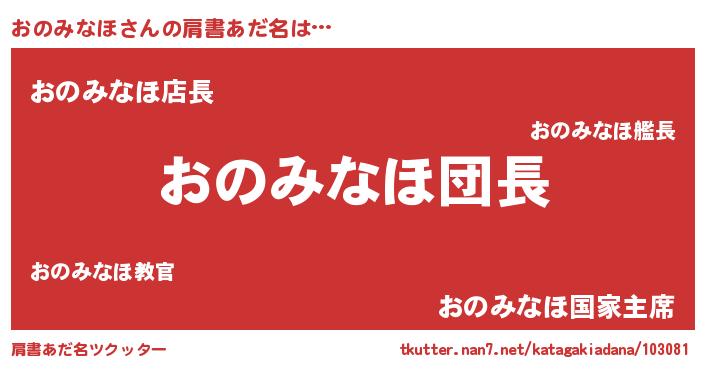 | ヒーロー風カッコイイあだ名 | 『幻影騎士オノ』『スーパーオノミナホ』 |