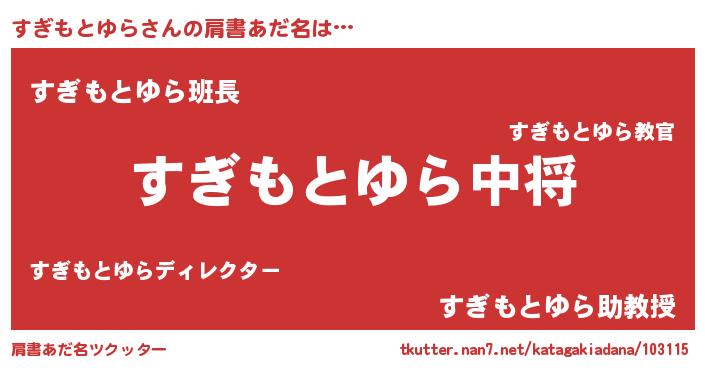 | ヒーロー風カッコイイあだ名 | 『炎刃騎士スギ』『愛の使者すぎもとゆら』 |