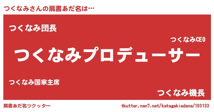 | ヘコむあだ名 | 『つくっぺ』『つくにー』『豆乳』 |