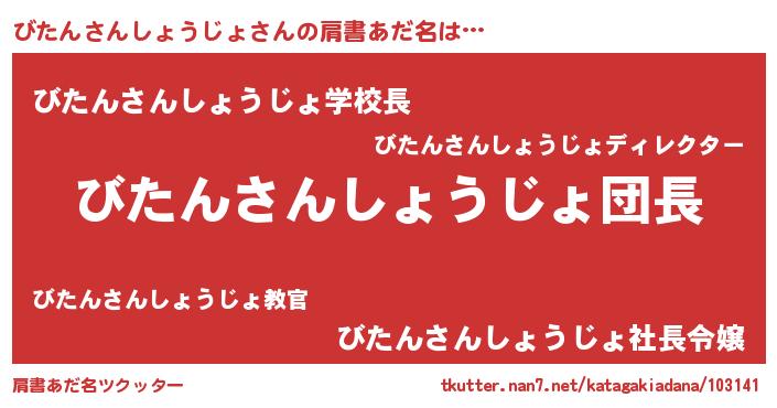 | ヘコむあだ名 | 『びたお』『びたにゅー』『豆乳』 |