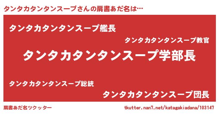 | 男性向けラノベタイトル風あだ名 | 『ノーゲーム・ノータンタカタンタンスープ』 |