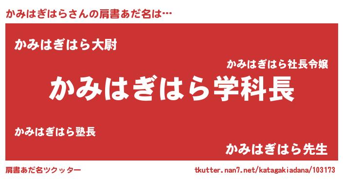 | 男性向けラノベタイトル風あだ名 | 『ノーゲーム・ノーカミハギハラ』 |