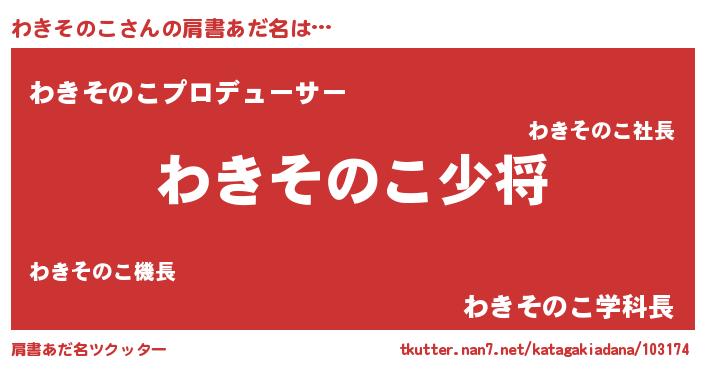 | 男性向けラノベタイトル風あだ名 | 『転生したらわきそのこだった件』 |