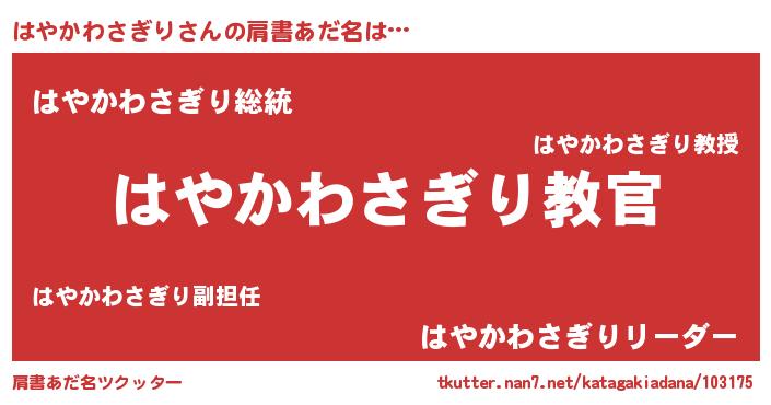 | 欧米人風あだ名 | 『ダレノガレはやかわさぎり』 |