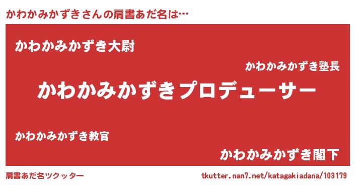 | 欧米人風あだ名 | 『アンジェラ・かわかみかずき』 |