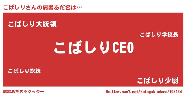 | ヒーロー風カッコイイあだ名 | 『スーパーコバシリ』『愛の使者こばしり』 |