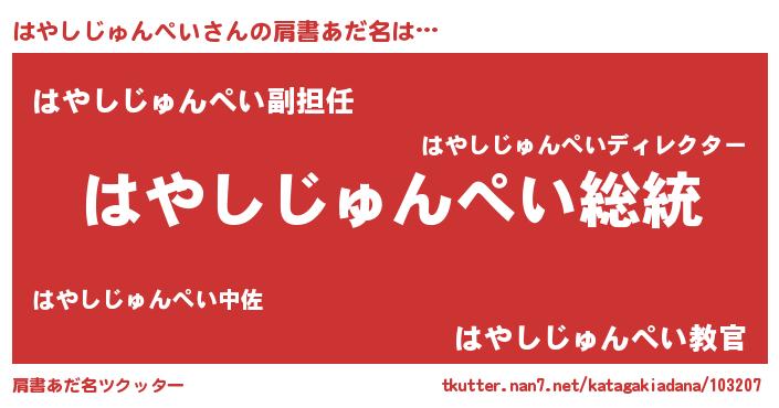 | 意味不明あだ名 | 『自称はやしじゅんぺい』 |