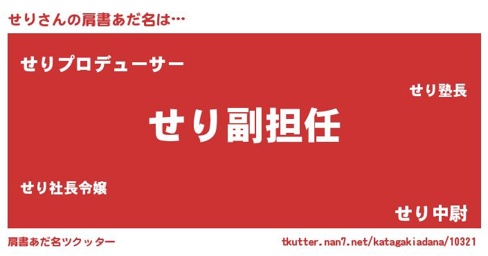 | ヘコむあだ名 | 『せり(震え声)』『せりぷりん』 |
