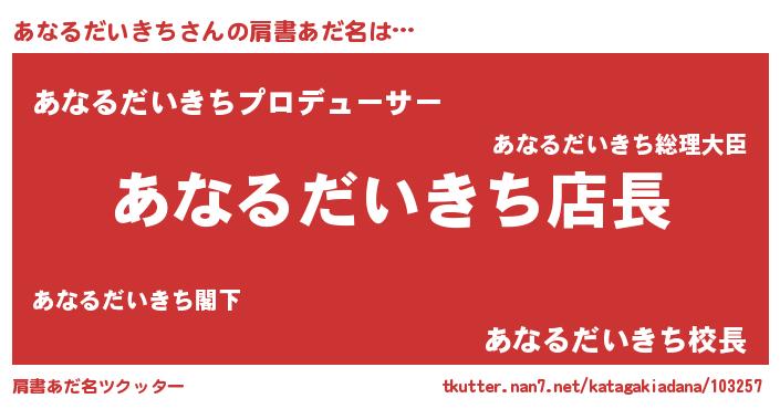 | 男性向けラノベタイトル風あだ名 | 『アナルダイキチアートオンライン』 |