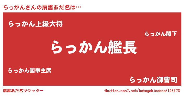 | ヘコむあだ名 | 『らっにゅー』『なまこ酢』『らっを』 |