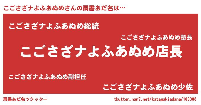 | 男性向けラノベタイトル風あだ名 | 『こごさざナよふあぬめの憂鬱』 |