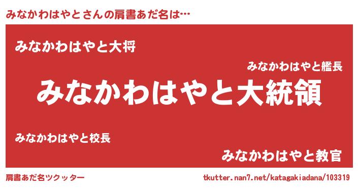 | 男性向けラノベタイトル風あだ名 | 『やはりみなかわはやとの青春ラブコメはまちがっている 』 |