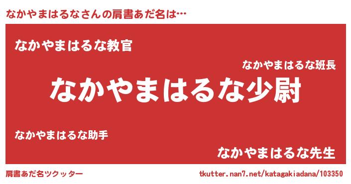 | 男性向けラノベタイトル風あだ名 | 『転生したらなかやまはるなだった件』 |