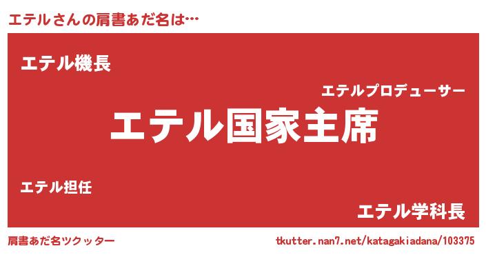 | 女子向けラノベタイトル風あだ名 | 『エテルの婚約者』『エテル恋絵巻』 |