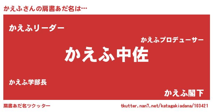 | 意味不明あだ名 | 『なめこ科かえふ属』『自称かえふ』 |