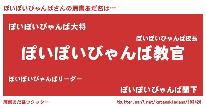 | 胡散臭い通販商品みたいなあだ名 | 『あなたにだけ特別に提供する世界で10本だけ現存している希少なブランデー…その名も「ぽいぽいびゃんば」』 |