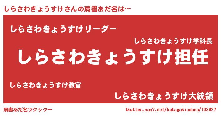 | ヘコむあだ名 | 『しらさわきょうすけ(苦笑)』『しらぷりん』 |