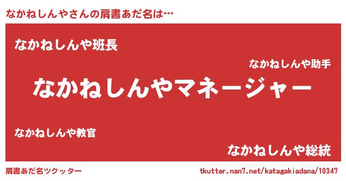 | 欧米人風あだ名 | 『アンジェラ・なかねしんや』 |