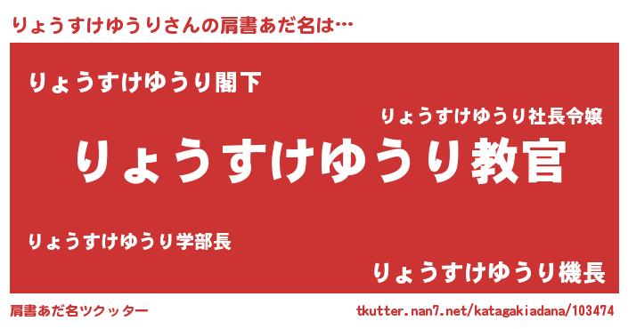 | 男性向けラノベタイトル風あだ名 | 『この素晴らしい世界にりょうすけゆうりを!』 |