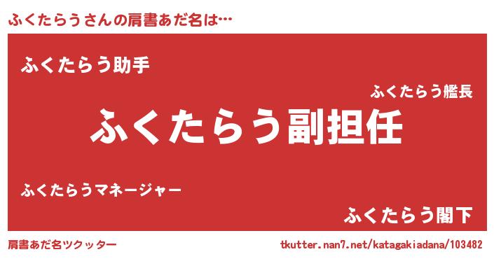 | 女子向けラノベタイトル風あだ名 | 『異世界で失敗しない100のふくたらう』 |
