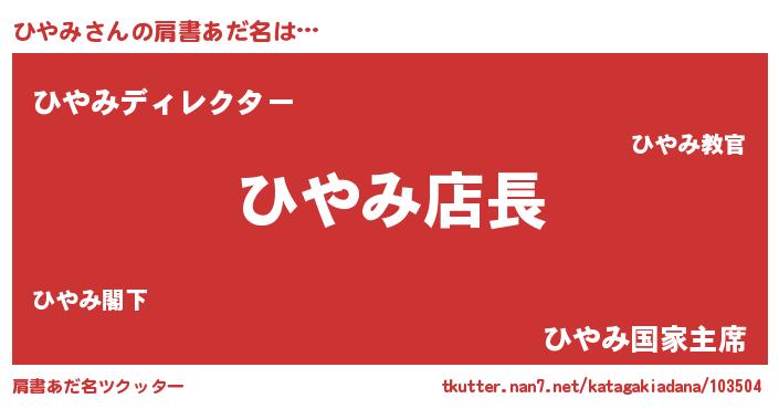 | 胡散臭い通販商品みたいなあだ名 | 『億万長者になれる水晶球…その名も「ひやみ」』 |