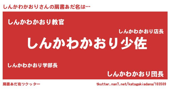 | 男性向けラノベタイトル風あだ名 | 『転生したらしんかわかおりだった件』 |