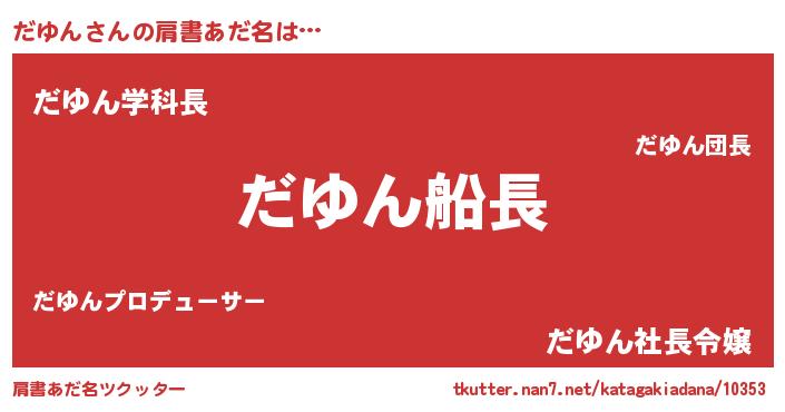 | 男性向けラノベタイトル風あだ名 | 『緋弾のダユン』『だゆんの憂鬱』 |