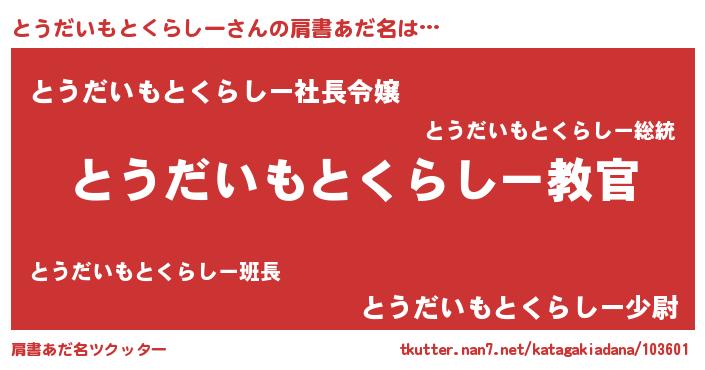 | 意味不明あだ名 | 『住所不定無職とうだいもとくらしー(53歳)』 |