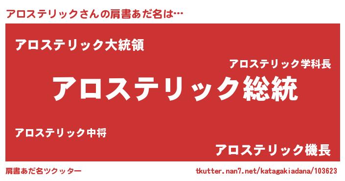 | 男性向けラノベタイトル風あだ名 | 『魔法科高校のアロステリック』 |