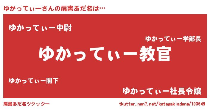 | 男性向けラノベタイトル風あだ名 | 『この素晴らしい世界にゆかってぃーを!』 |