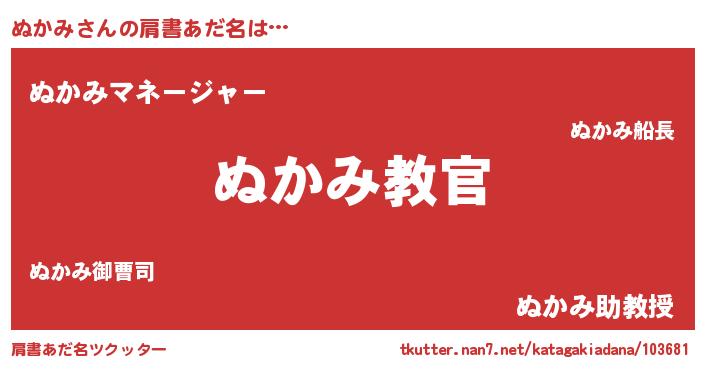 | ヘコむあだ名 | 『ぬかにゅー』『つくし』『ぬかを』 |