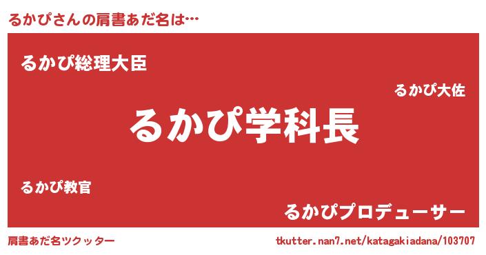 | 女子向けラノベタイトル風あだ名 | 『るかぴ恋絵巻』『るかぴの婚約者』 |