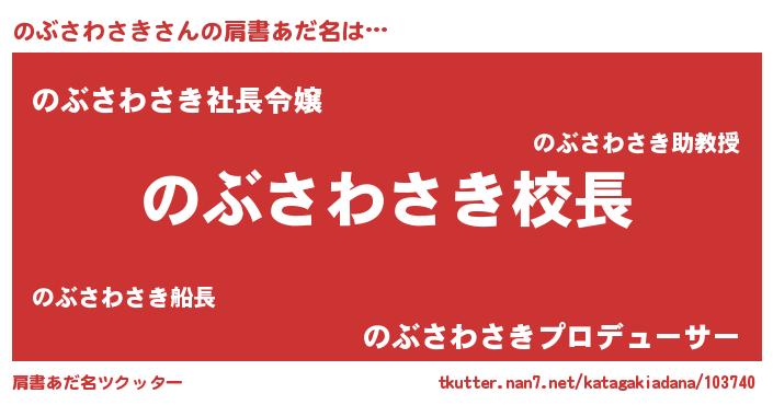 | 女子向けラノベタイトル風あだ名 | 『異世界で失敗しない100ののぶさわさき』 |