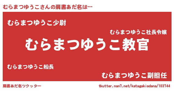 | 男性向けラノベタイトル風あだ名 | 『この素晴らしい世界にむらまつゆうこを!』 |