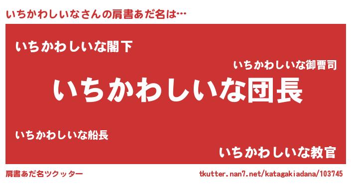 | 意味不明あだ名 | 『とにかく怪しいいちかわしいな』 |