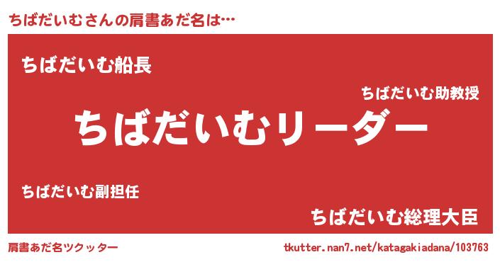| 男性向けラノベタイトル風あだ名 | 『ちばだいむの嫁は女の子じゃないと思った?』 |