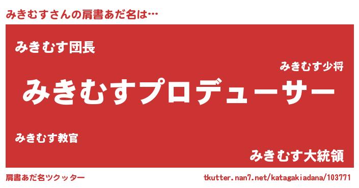 | 男性向けラノベタイトル風あだ名 | 『みきむすに滅ぼされるだけの簡単なお仕事です』 |