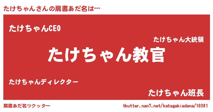 | 男性向けラノベタイトル風あだ名 | 『この素晴らしい世界にたけちゃんを!』 |