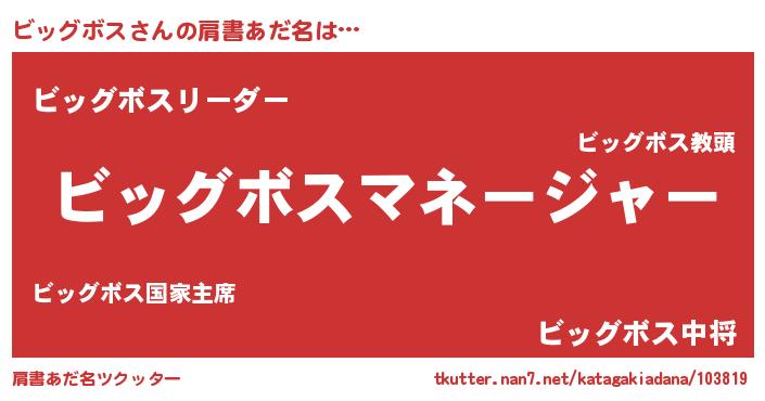 | 意味不明あだ名 | 『とにかく怪しいビッグボス』 |
