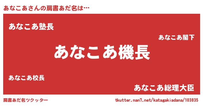 | 意味不明あだ名 | 『とにかく怪しいあなこあ』 |