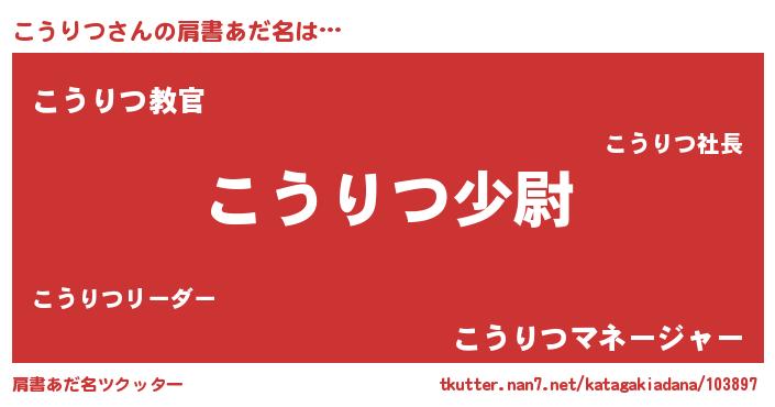 | 男性向けラノベタイトル風あだ名 | 『コウリツスレイヤー』『こうりつの憂鬱』 |
