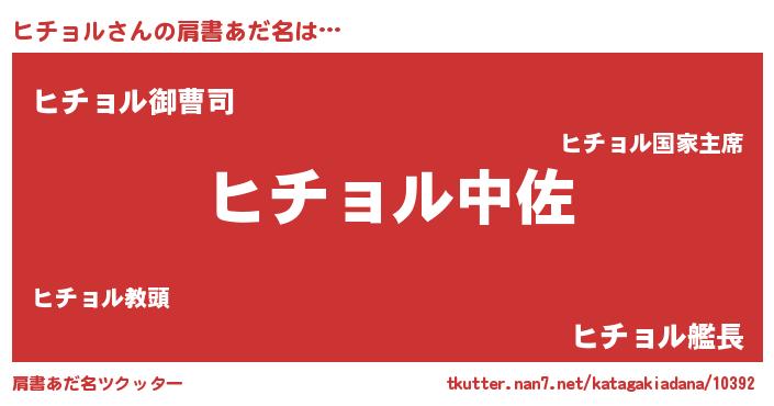 | ヘコむあだ名 | 『ヒチにー』『豆乳』『ヒチョル(爆)』 |