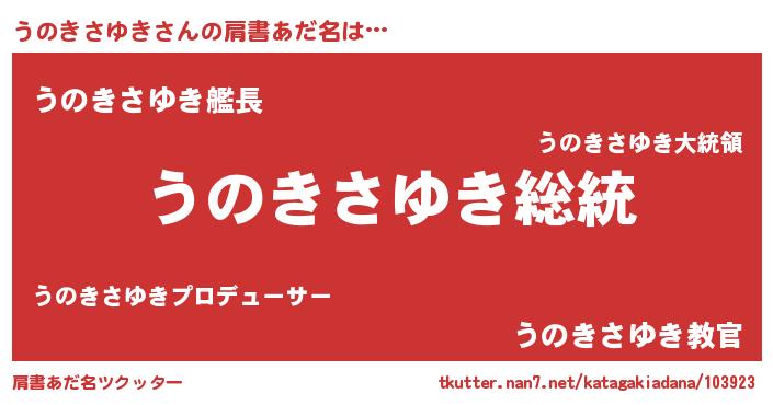| 意味不明あだ名 | 『自称うのきさゆき』 |