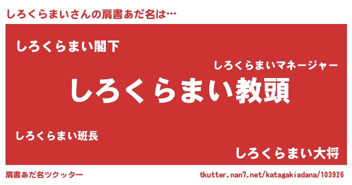 | 男性向けラノベタイトル風あだ名 | 『しろくらまいという概念が存在しない退屈な世界 』 |