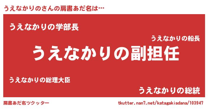 | 男性向けラノベタイトル風あだ名 | 『うえなかりのという概念が存在しない退屈な世界 』 |