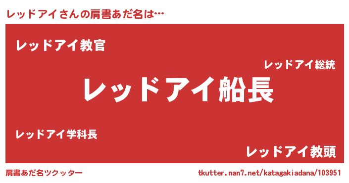| 意味不明あだ名 | 『住所不定無職レッドアイ(5歳)』 |